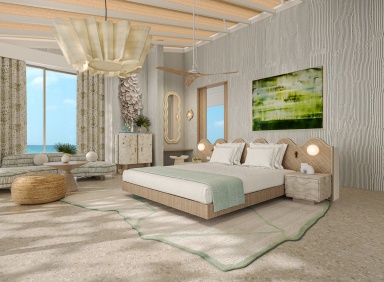 Номер уютный, со всем необходимым, чайник, капсульная кофемашина, бесплатная вода в номере в огромном количестве, банные принадлежности фирмы Amouage, утюг с гладильной доской.Большая красивая территория, внимательное обслуживание на пляже.